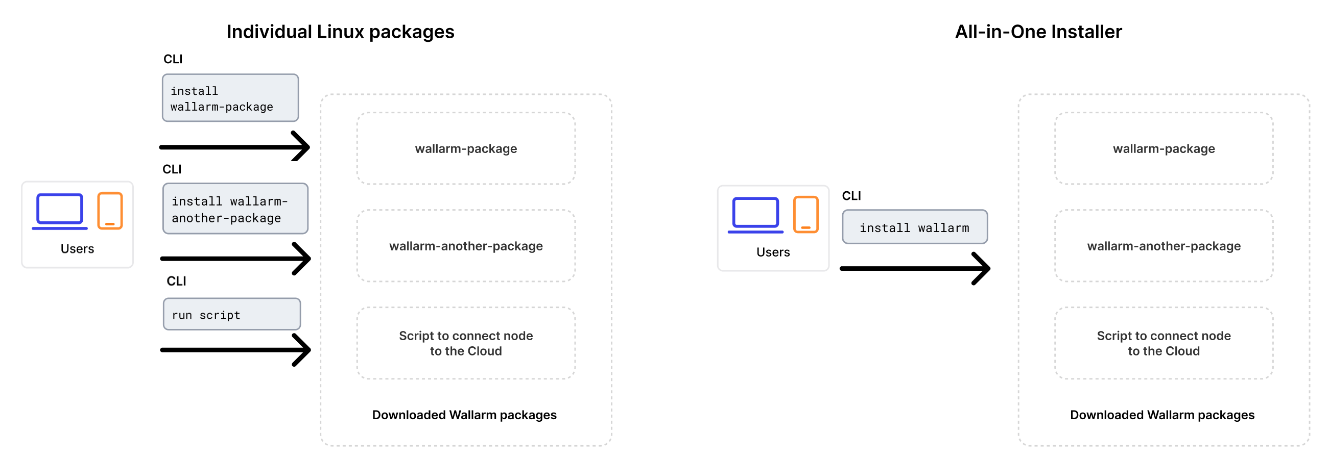 Since version 4.10, upgrading is performed using Wallarm's all-in-one installer as the individual Linux packages have been deprecated. This method simplifies the upgrade process and ongoing deployment maintenance compared to the previous approach.