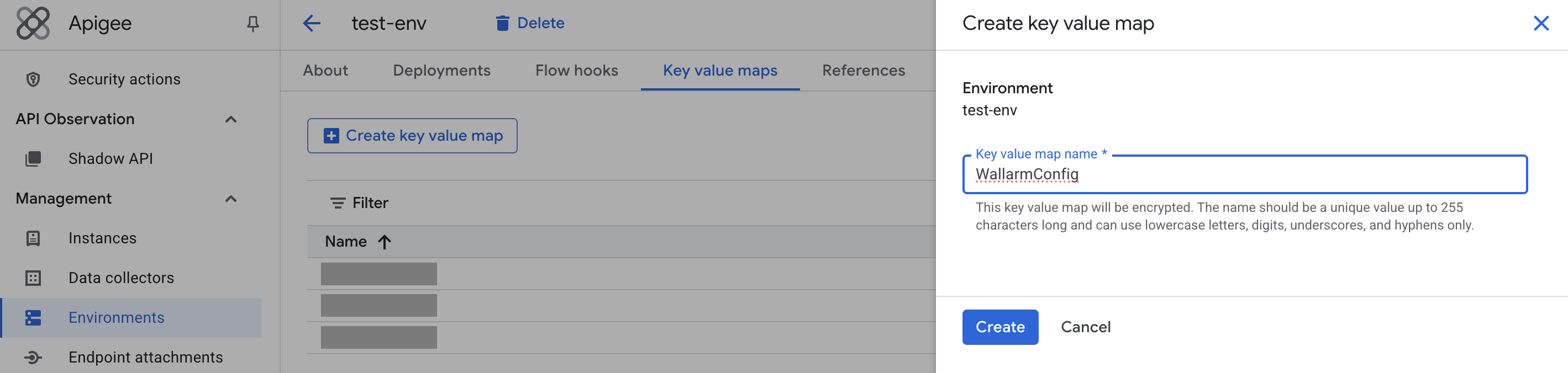 WallarmConfigKVM:Use the following Apigee API call to create a KVM at the environment level:
